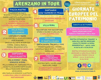 "Itinerario marinaro" aderisce ad "Arenzano in tour", l'iniziativa voluta dal Comune di Arenzano per celebrare le Giornate Europee del Patrimonio in programma il 26 e il 27 settembre 2020. Il Santuario delle Olivete resterà aperto nella giornata di sabato e nell'occasione verrà presentata "Gìanca e Nèigro a-o Santoâio da Nonçia", la "foa" (favola) scritta da Lorenzo Giacchero.